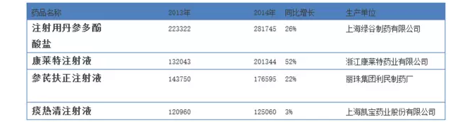 西安世紀(jì)盛康藥業(yè)的腎康栓、哈爾濱珍寶制藥的血栓通、揚(yáng)子江藥業(yè)的藍(lán)芩口服液、江蘇康緣藥業(yè)的熱毒寧注射液、陜西步長(zhǎng)制藥的腦心通膠囊這5個(gè)品種2014年公立醫(yī)院終端的市場(chǎng)規(guī)模都接近10億,再考慮到這5個(gè)品種在縣級(jí)公立醫(yī)院、城市社區(qū)醫(yī)院和鄉(xiāng)鎮(zhèn)衛(wèi)生院的市場(chǎng)規(guī)模,加起來總體的臨床市場(chǎng)幾乎都已經(jīng)過10億元。
