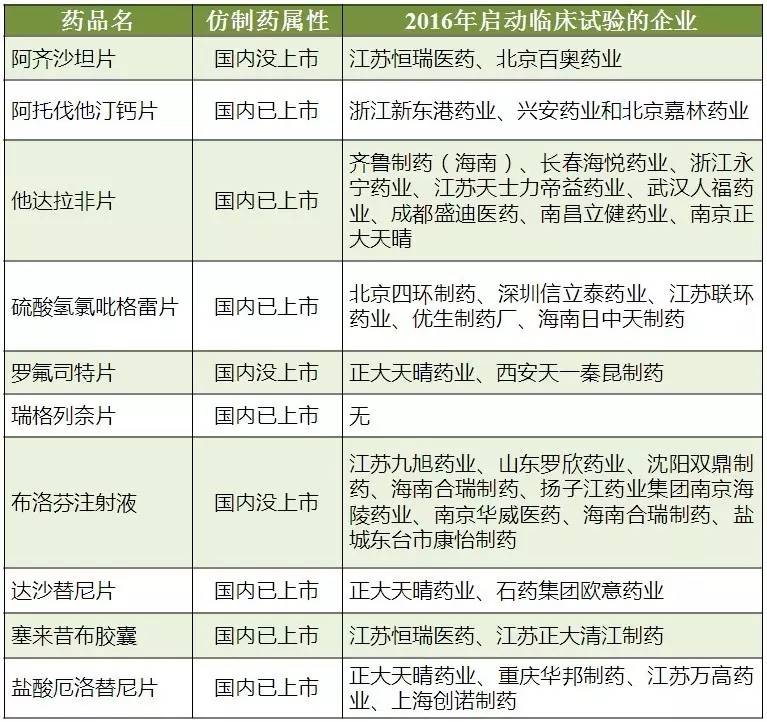 競爭對手較多、產(chǎn)品潛力有限、已上市廠家數(shù)相對較多的產(chǎn)品(如瑞格列奈片),則無企業(yè)啟動臨床。