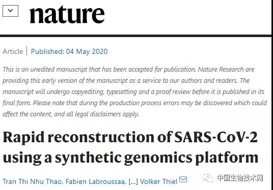 當(dāng)?shù)貢r(shí)間5月4日,國(guó)際頂級(jí)學(xué)術(shù)期刊《自然》(Nature)以“加快評(píng)審文章”(Accelerated Article Preview)形式在線發(fā)表了來(lái)自瑞士、德國(guó)、俄羅斯多家科研機(jī)構(gòu)的一項(xiàng)研究“Rapid reconstruction of SARS-CoV-2 using a synthetic genomics platform”。團(tuán)隊(duì)在已知新冠病毒基因序列的基礎(chǔ)上,首次在試驗(yàn)中通過(guò)反向遺傳學(xué)手段在酵母菌中快速構(gòu)建出了活的新冠病毒。論文中提到,反向遺傳學(xué)被認(rèn)為是一種不可或缺的工具,它徹底改變了我們對(duì)病毒發(fā)病機(jī)制和疫苗開(kāi)發(fā)的認(rèn)識(shí)。