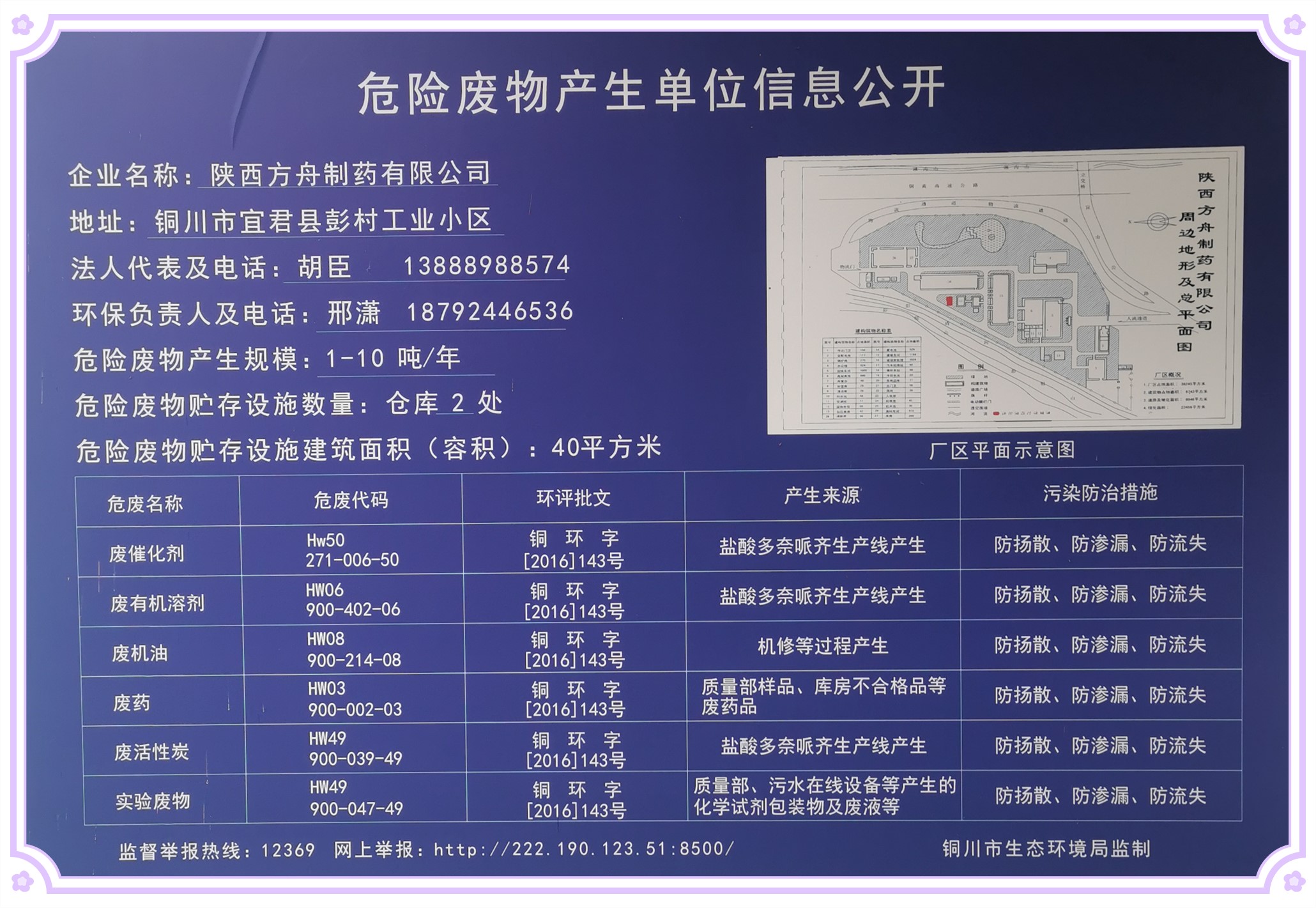 陜西方舟制藥有限公司危險廢物信息公開