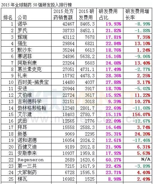 《制藥經(jīng)理人》雜志一年一度的《全球制藥企業(yè)排名50強》近日出爐,2015年制藥行業(yè)繼續(xù)保持了持續(xù)穩(wěn)定的研發(fā)投入,合計研發(fā)投入高達1111.89億美元。