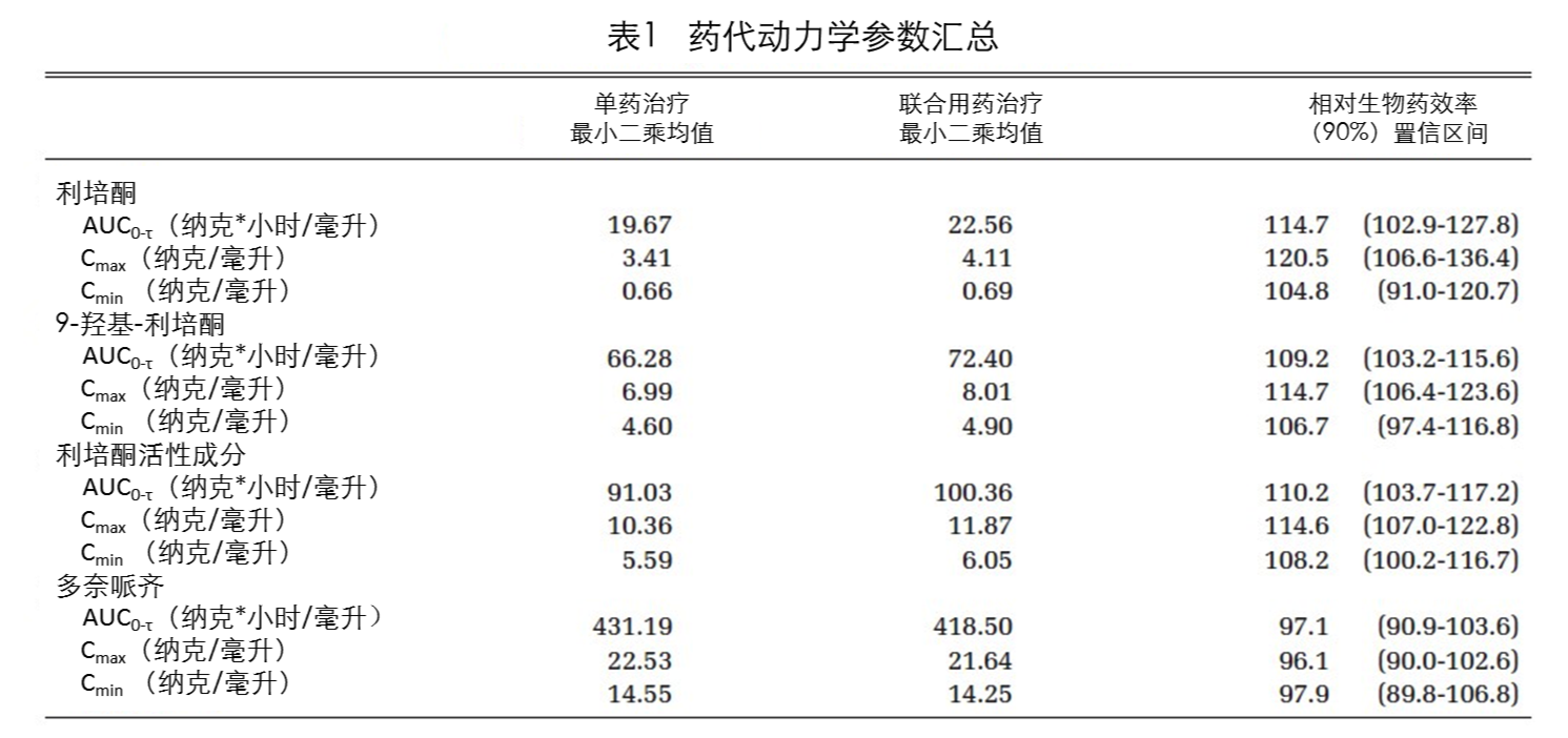 利培酮和多奈哌齊聯(lián)合用藥的藥代動力學(xué)及安全性評估