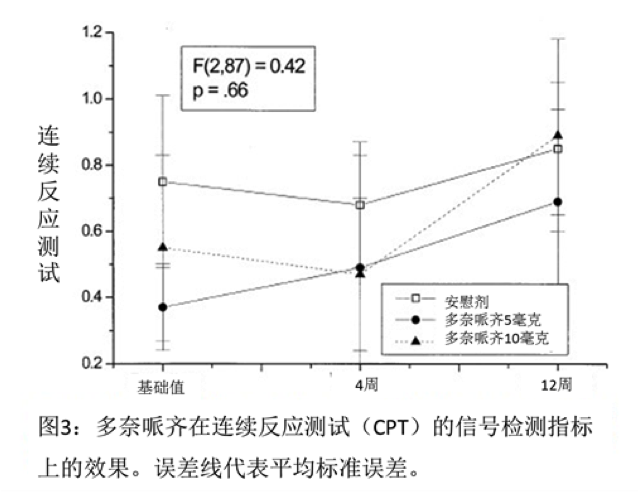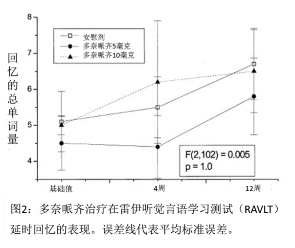 結果:與安慰劑相比,無論是5毫克還是10毫克劑量的多奈哌齊都未能對認知產生任何程度上的顯著改善。