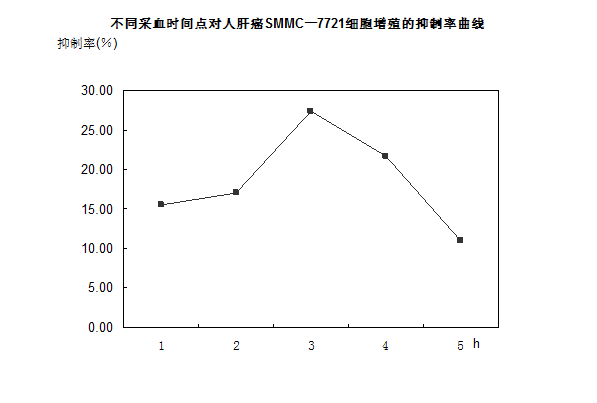 圖1 不同采血時(shí)間點(diǎn)對(duì)人肝癌SMMC一7721細(xì)胞增殖的抑制率曲線