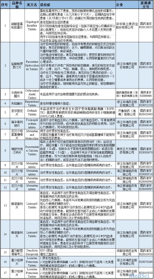 根據(jù)《中華人民共和國(guó)藥品管理法》、《國(guó)務(wù)院關(guān)于改革藥品醫(yī)療器械審評(píng)審批制度的意見》(國(guó)發(fā)〔2015〕44號(hào))、《國(guó)務(wù)院辦公廳關(guān)于開展仿制藥質(zhì)量和療效一致性評(píng)價(jià)的意見》(國(guó)辦發(fā)〔2016〕8號(hào))、《關(guān)于仿制藥質(zhì)量和療效一致性評(píng)價(jià)工作有關(guān)事項(xiàng)的公告》(國(guó)家食品藥品監(jiān)督管理總局公告2017年第100號(hào))的規(guī)定,經(jīng)審查,現(xiàn)發(fā)布符合仿制藥質(zhì)量和療效一致性評(píng)價(jià)要求的藥品申請(qǐng)品種目錄: