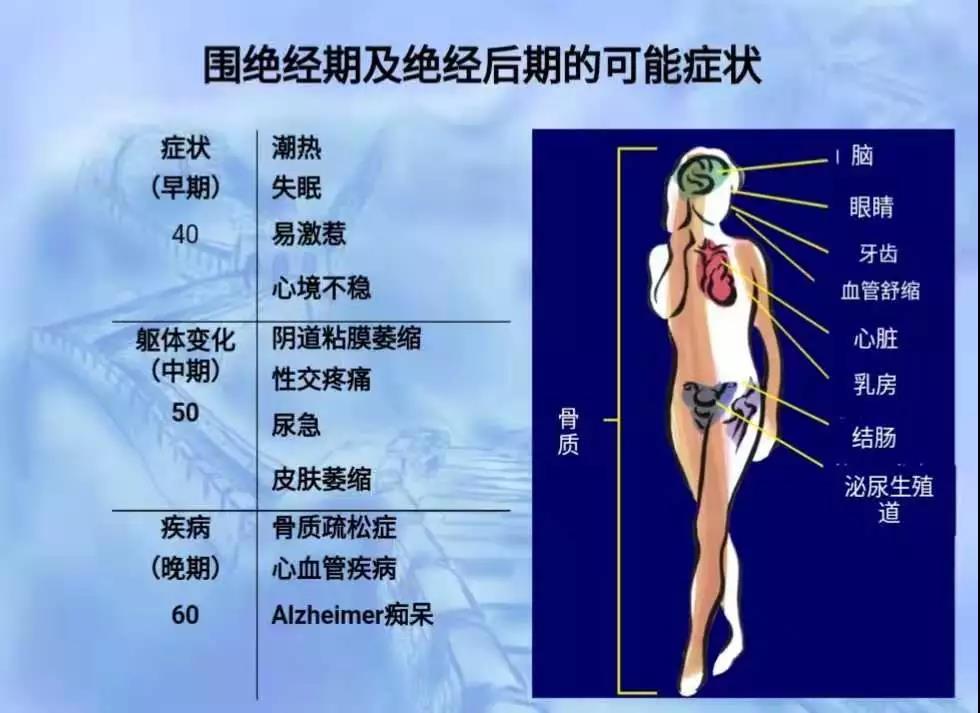 就目前癥狀而言,這位女性正處于圍絕經(jīng)時(shí)期,即“更年期”,出現(xiàn)因激素水平波動(dòng)或下降引起的月經(jīng)紊亂和一系列神經(jīng)心理癥狀。